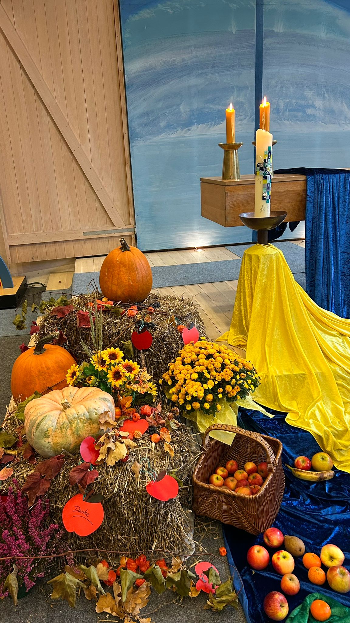 Am 14.10. feierten unsere Erstklässler einen Erntedankgottesdienst in der Vicelinkirche. Gemeinsam sagten sie Danke für alles, was uns die Natur schenkt – für Obst, Gemüse, Sonne und Regen. Sie sangen Lieder und brachten Spenden für die Tafel in Norderstedt mit.